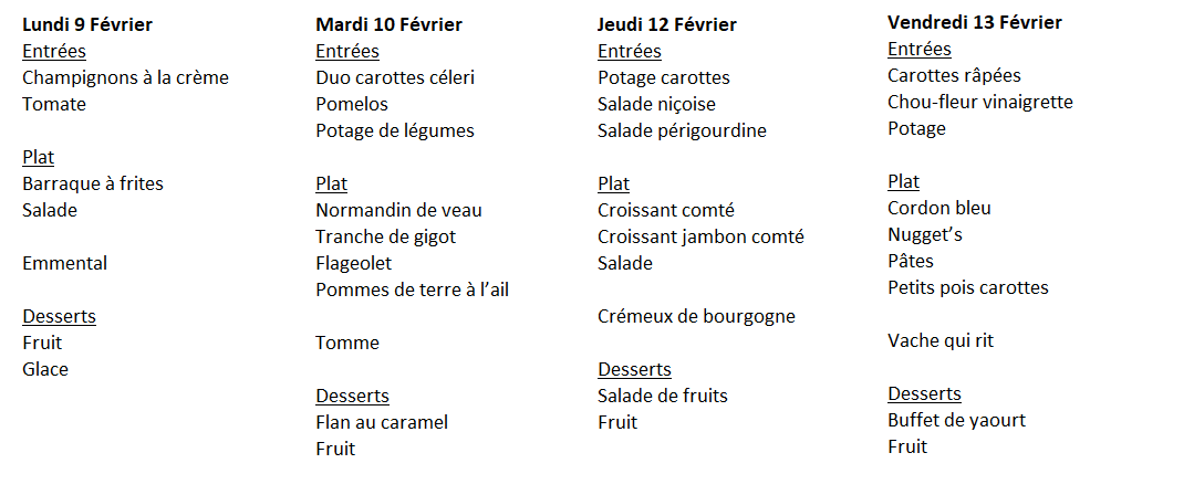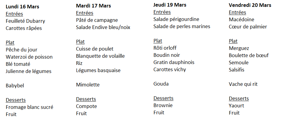 Menu de la restauration scolaire