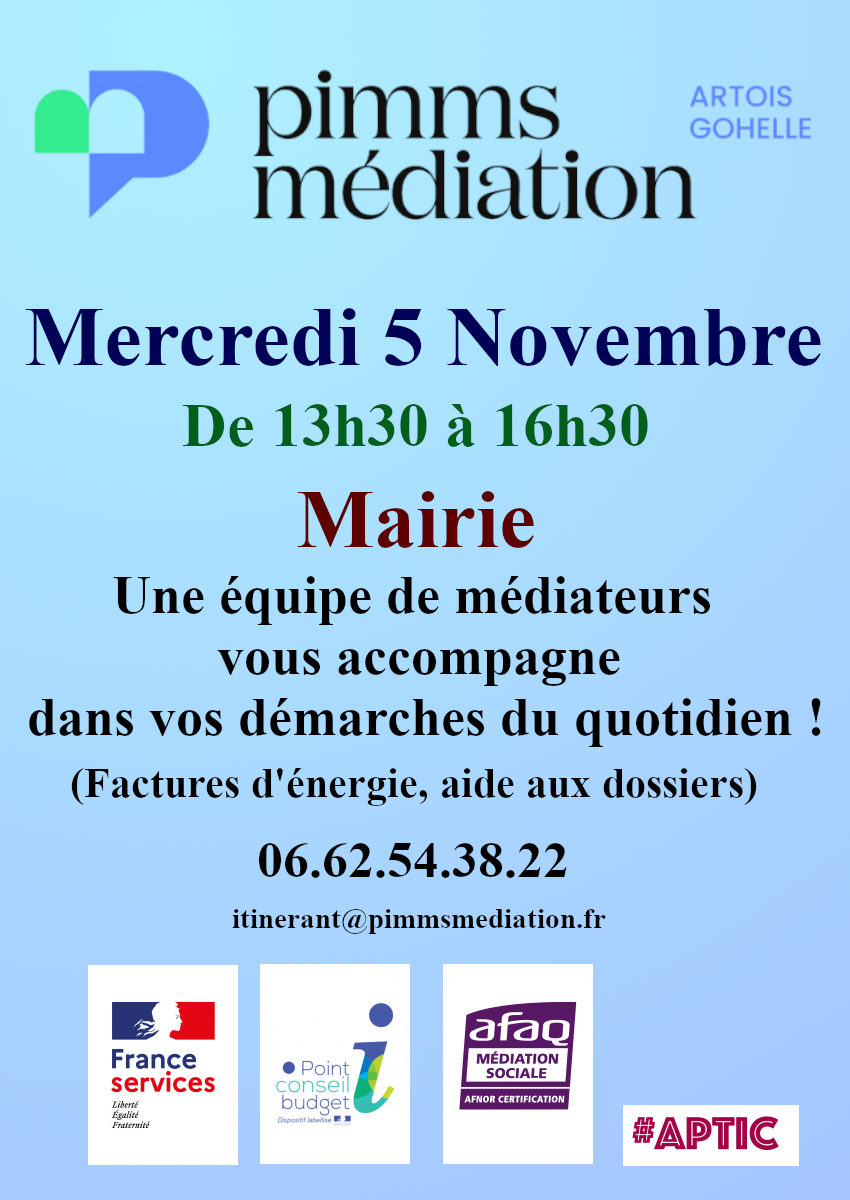 Le prochain passage du PIMMS aura lieu le Mercredi 5 Novembre.