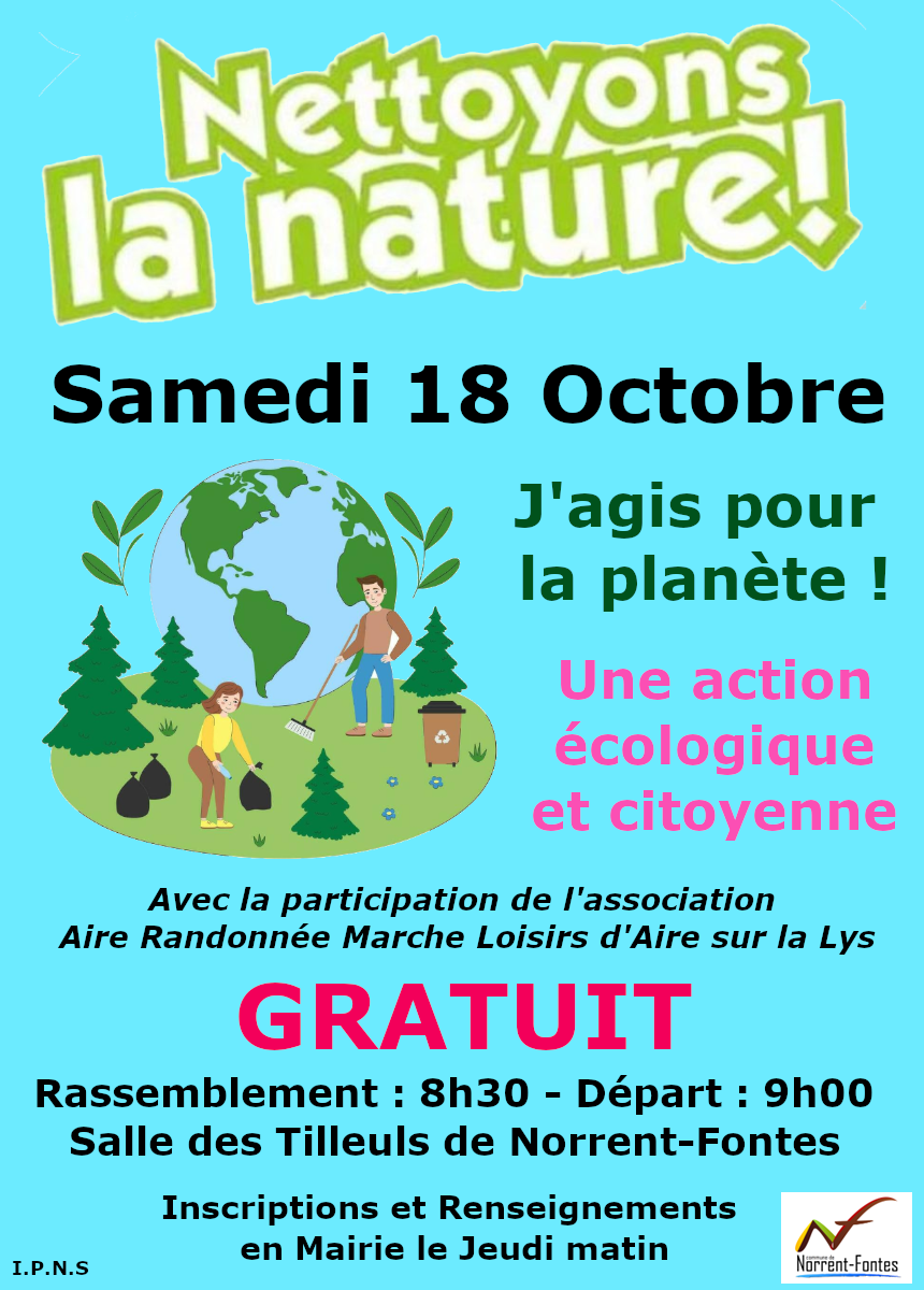 La commune en partenariat avec l’association Aire Randonnée Marche Loisirs d’Aire sur la Lys organisera le Samedi 18 Octobre un ramassage de déchets dans la commune.