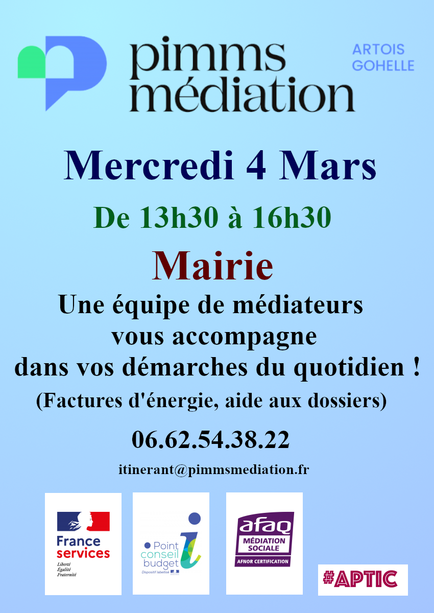 Le prochain passage du PIMMS aura lieu le Mercredi 4 Mars.