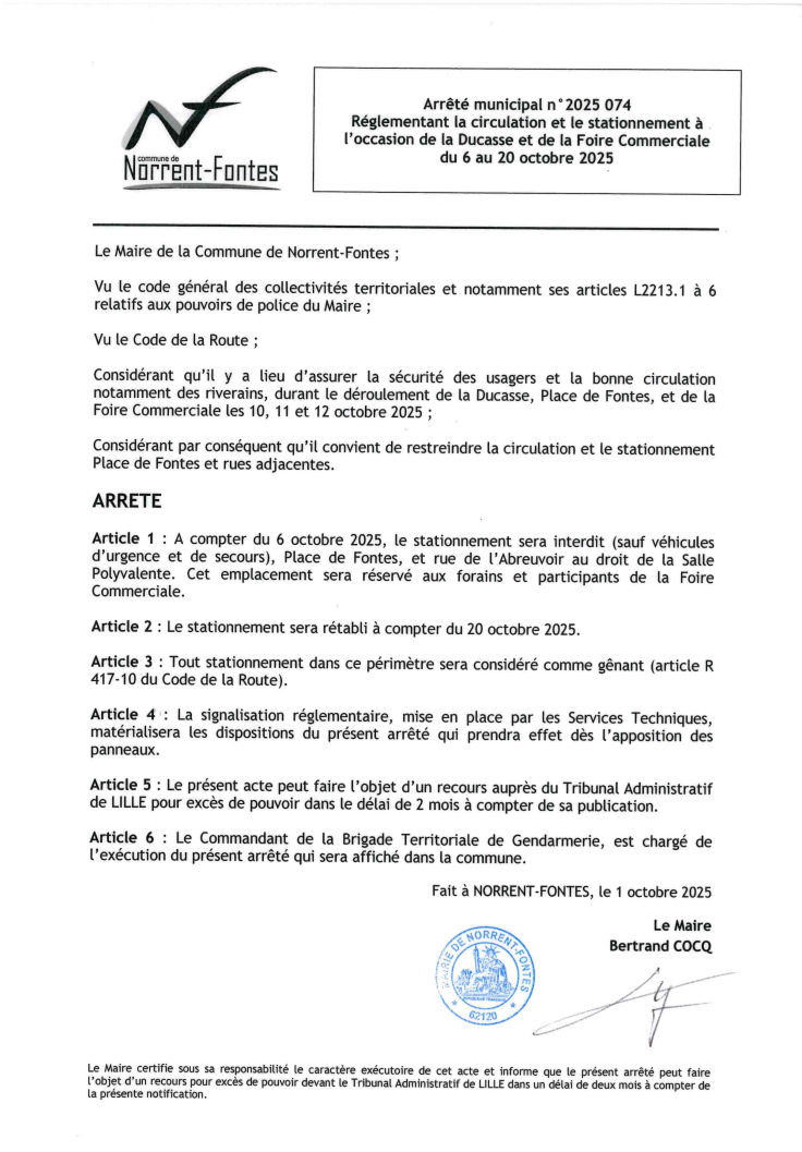 Arrêté n° 2025 042 - portant interdiction de circulation rue de l'égalité CTN RESEAUX création parc éolien enedis