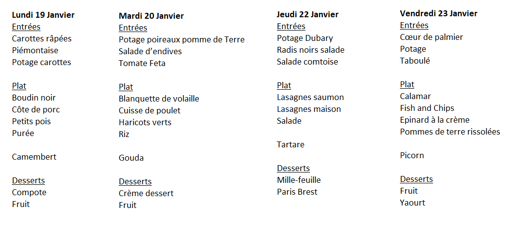 Menu de la restauration scolaire