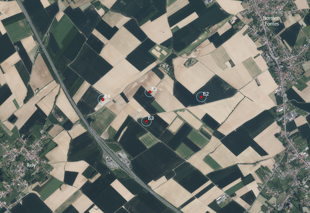 Depuis quelques semaines, les travaux sont en cours au niveau de notre chantier à Rely / Norrent-Fontes. Ce projet consiste en la construction de 4 éoliennes situées le long de l'autoroute A26.
