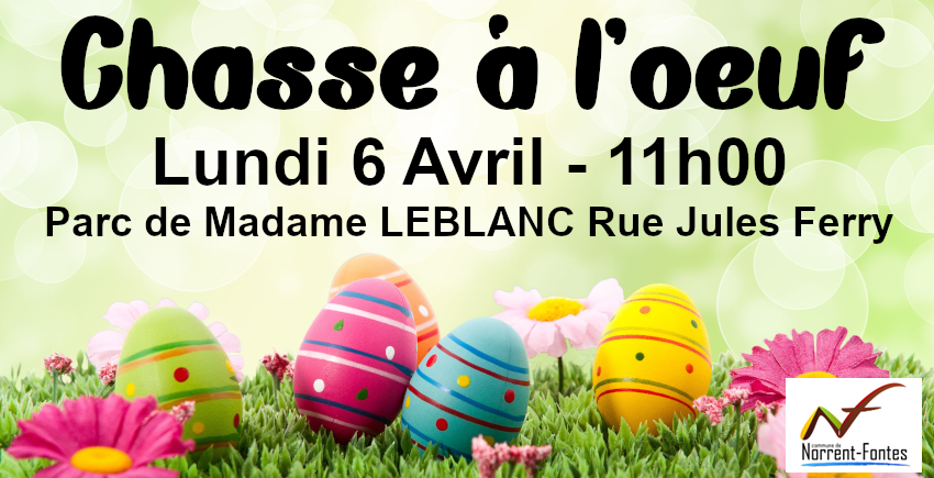 Pour Pâques, la municipalité propose une chasse à l’œuf dans le Jardin de Madame LEBLANC Rue Jules Ferry le Lundi 6 Avril à 11h00.