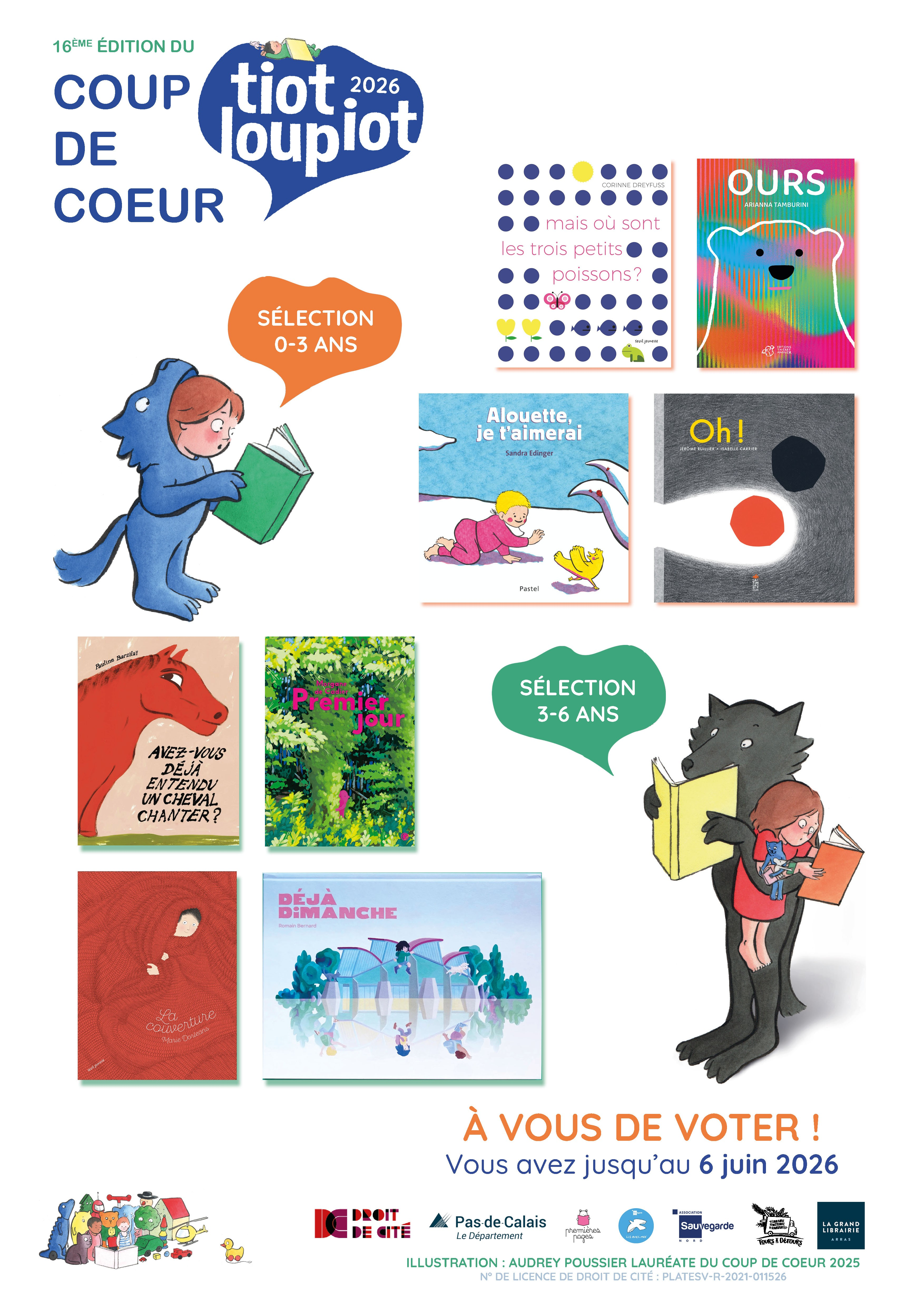 Venez écouter les histoires des albums de la sélection Tiot Loupiot 2026 le Vendredi 24 Avril à 10h30 en médiathèque.
