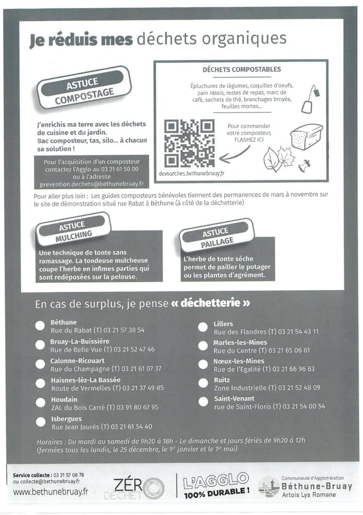 Cette collecte concerne : Les tontes de pelouse, les tailles de haies et d’arbustes, les fleurs et feuilles mortes, les résidus d’élagage, de débroussaillement.