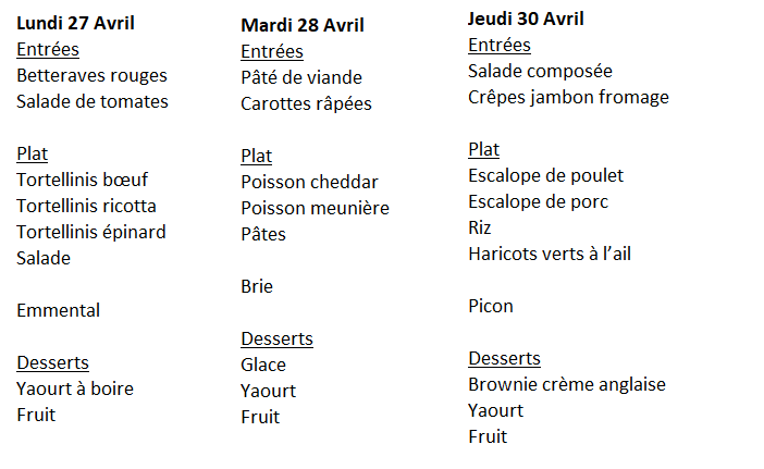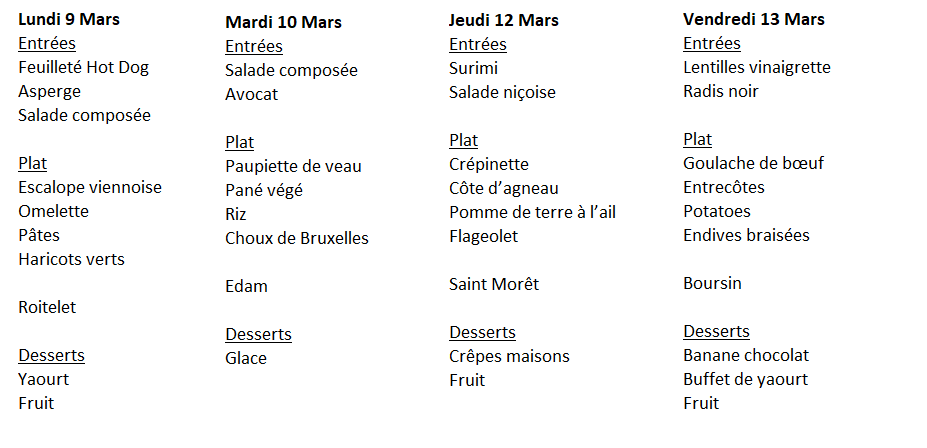 Menu de la restauration scolaire